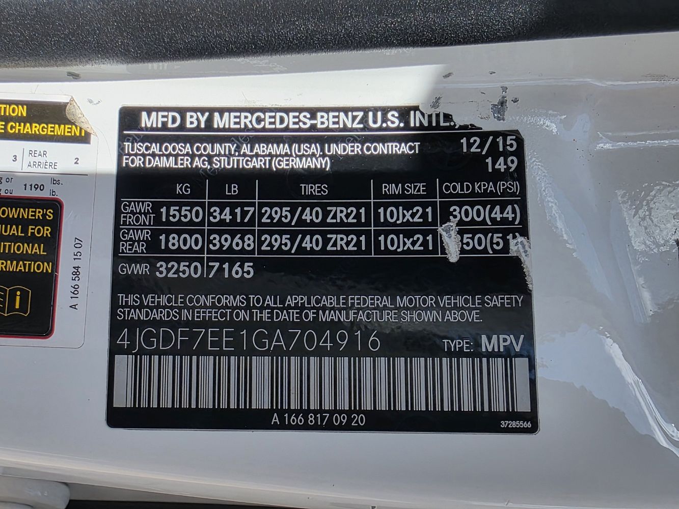 Maximum roof rack load: 198.4 lbs. maximum roof rack load