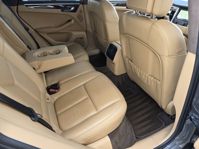 Experience the epitome of luxury and performance with the 2016 Porsche Macan Turbo, a masterpiece in Agate Grey Metallic. This all-wheel-drive powerhouse is equipped with a robust 3.6L Twin Turbo V6 engine delivering an exhilarating 400 horsepower and 406 lb-ft of torque. The striking exterior is complemented by sophisticated Bi-Xenon headlights featuring the Porsche Dynamic Light System for optimal visibility. Inside, indulge in Luxor Beige leather seats that are both heated and ventilated, ensuring comfort no matter the season.