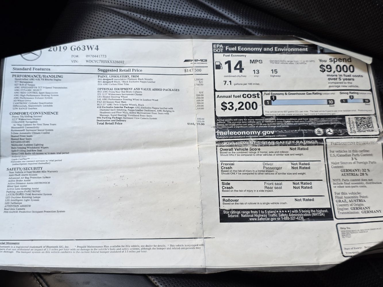 Dashboard material: Leather upholstered dashboard