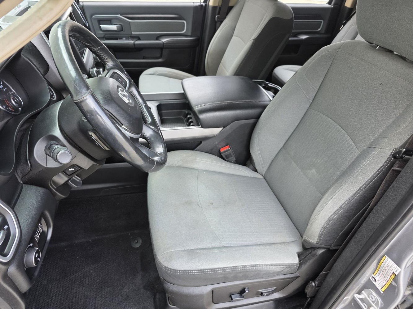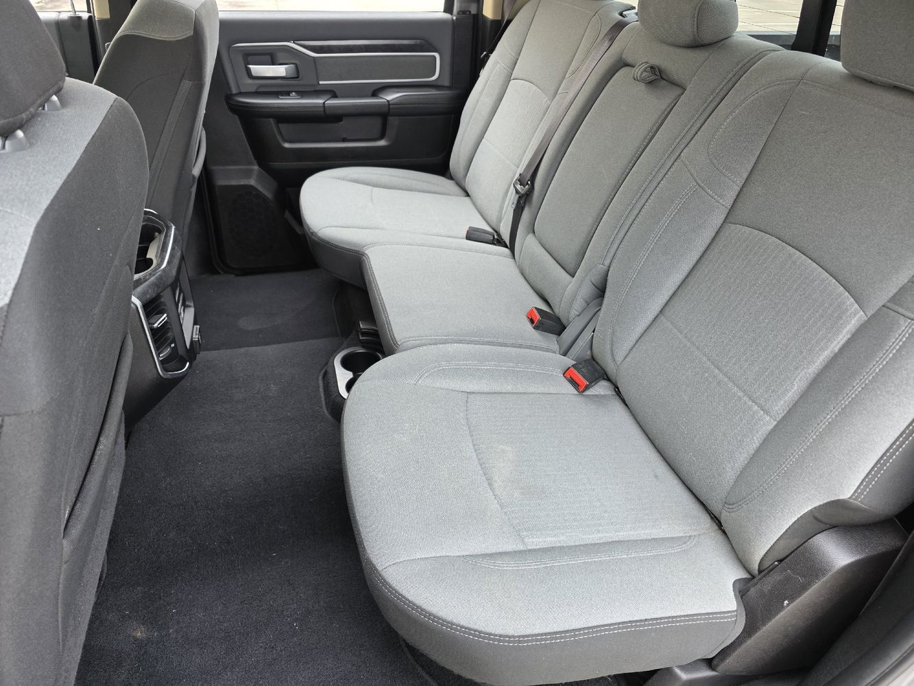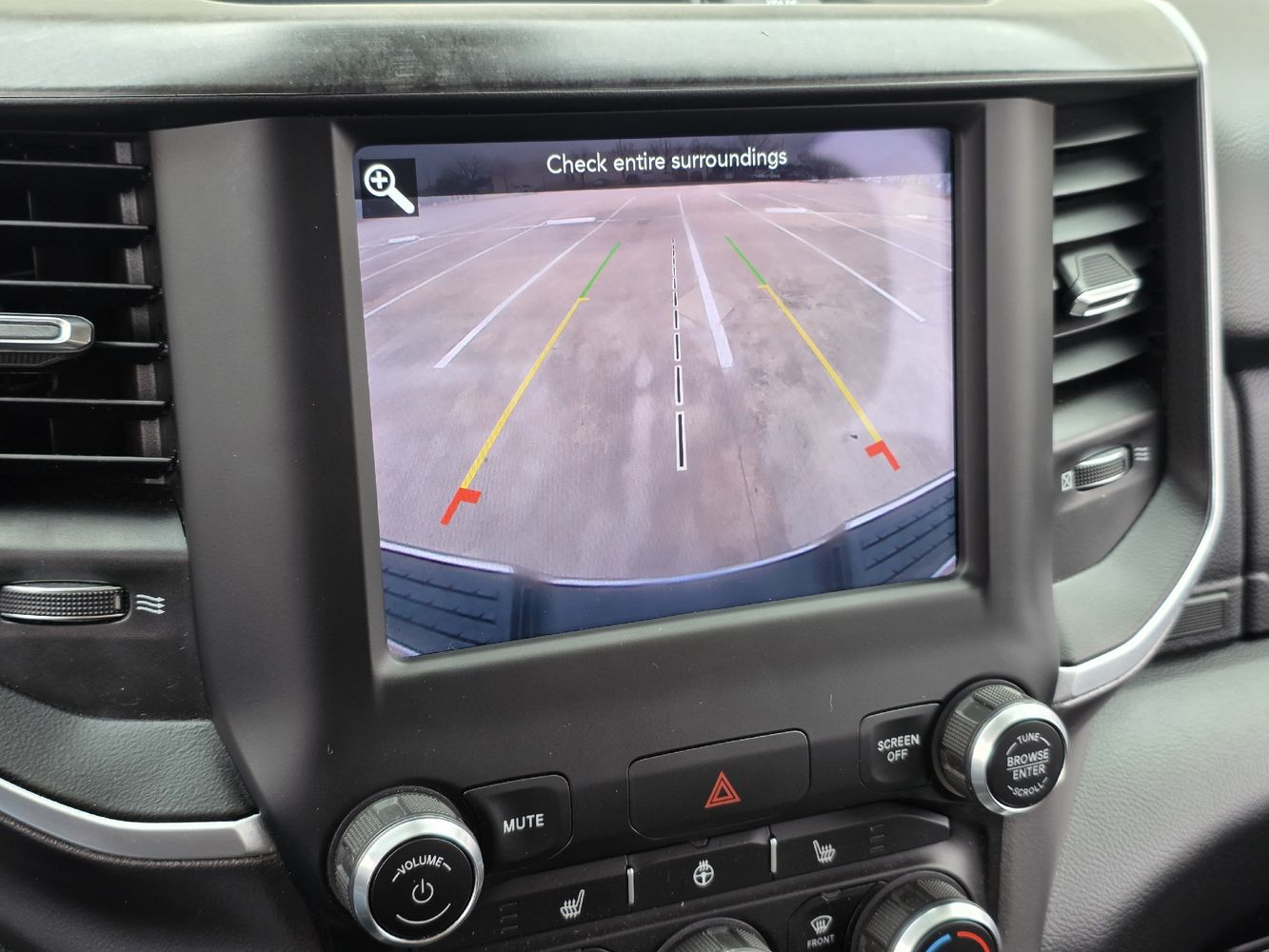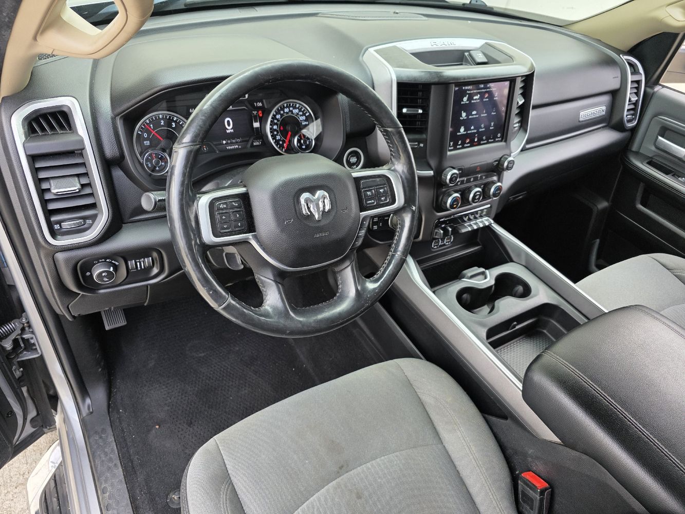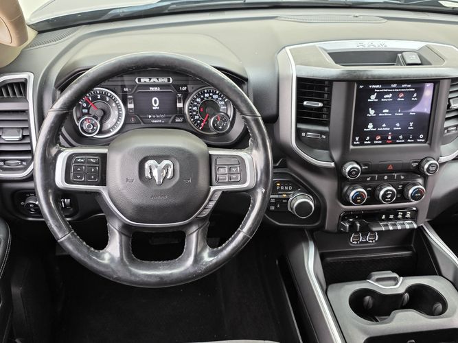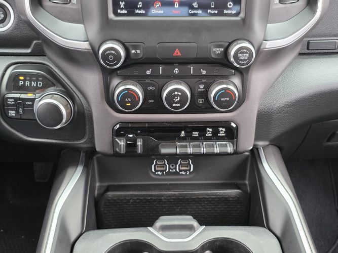 Inside, indulge in comfort with premium cloth bucket seats featuring adjustable lumbar support and enjoy cutting-edge technology like UConnect with Apple CarPlay and Android Auto on an expansive 8.4-inch touchscreen display. Safety features such as Blind Spot Monitoring and ParkSense assist provide peace of mind on every journey. With additional conveniences like remote start, heated steering wheel, and dual-zone climate control, this truck is designed to cater to all your needs. Don't miss out—experience the perfect blend of luxury and rugged capability today! Visit us now for a test drive!