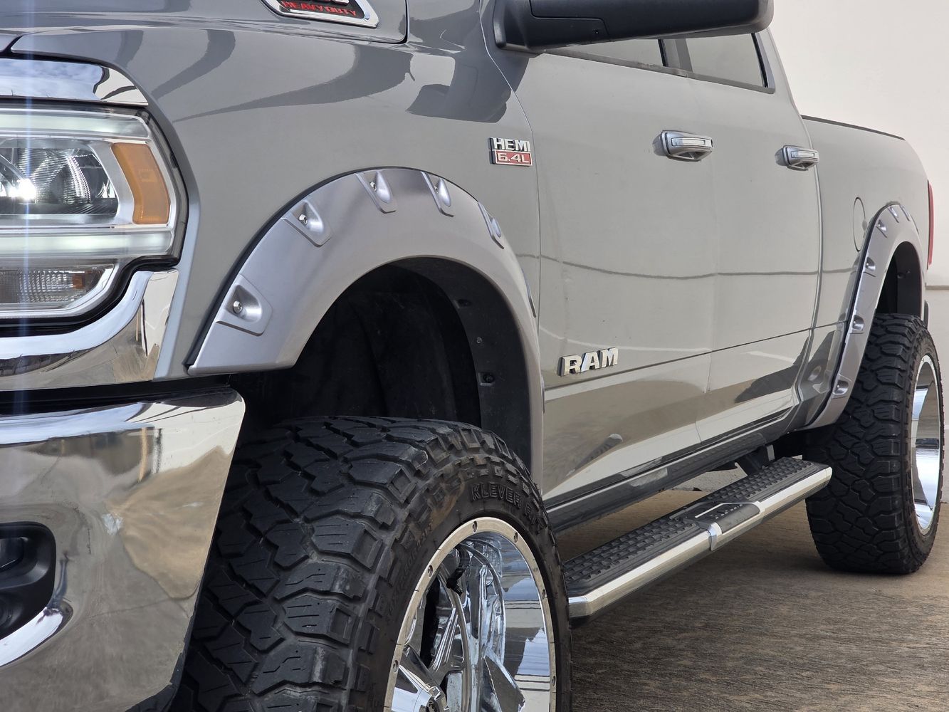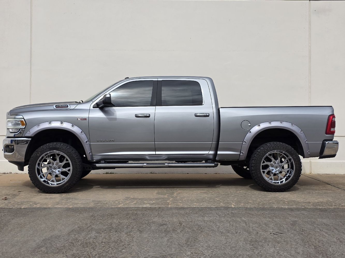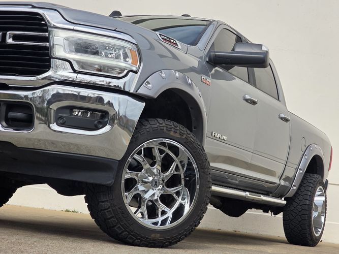 Elevate your driving experience with the 2019 Ram 2500 Big Horn, a powerhouse of performance and style. This Crew Cab pickup is dressed in an eye-catching Billet Silver Metallic Clear Coat, complemented by striking 22" Chrome Xtreme Force wheels that ensure you make a statement wherever you go. Under the hood lies a robust HEMI 6.4L V8 engine delivering an impressive 410 horsepower and 429 lb-ft of torque, paired with an efficient 8-speed shiftable automatic transmission for seamless power delivery on any terrain.