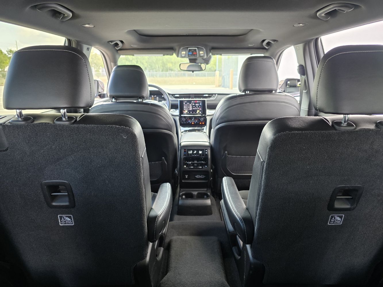 Third-row seatback upholstery: Carpet third-row seatback upholstery
