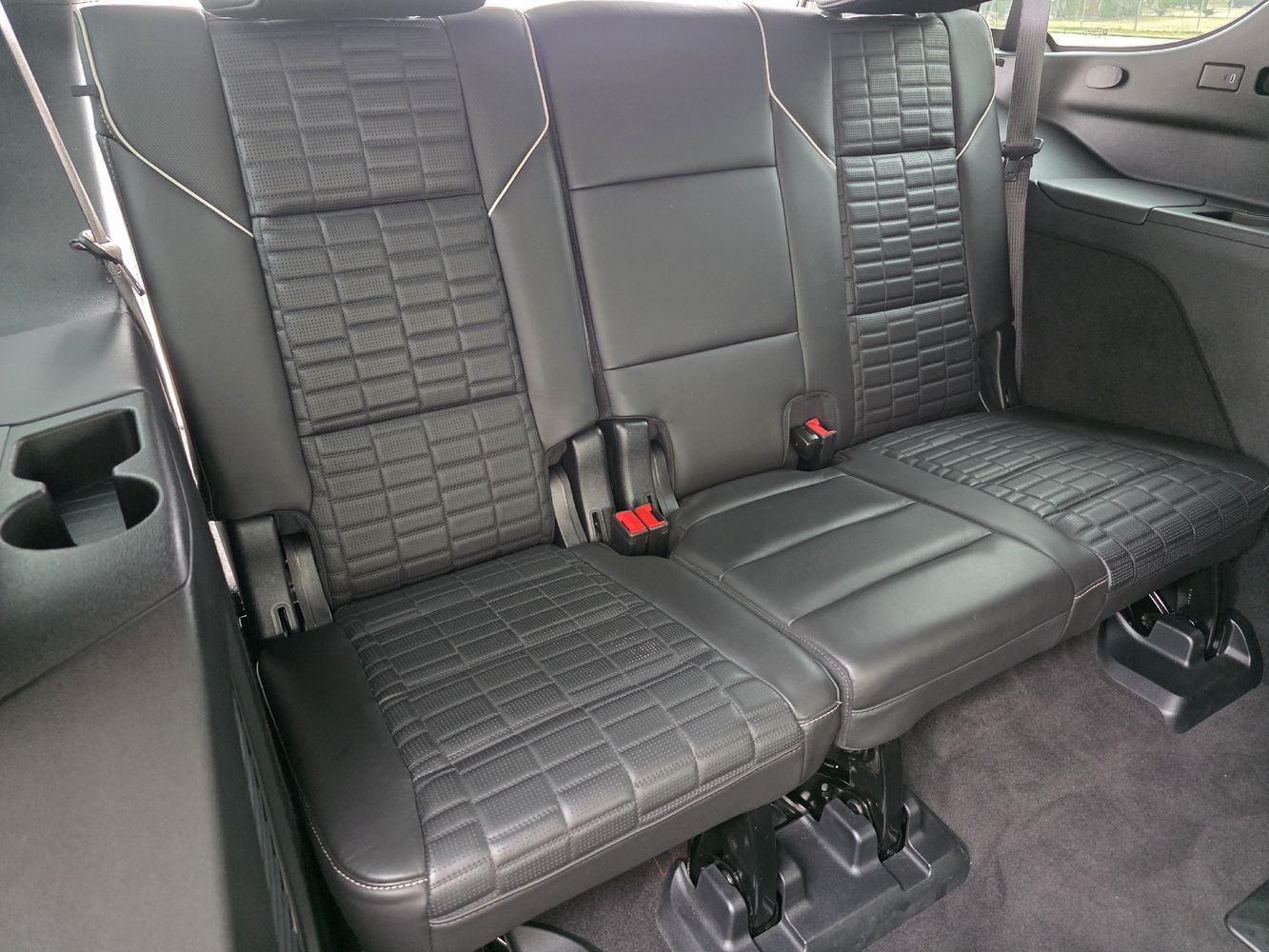 Third-row seatback upholstery: Carpet third-row seatback upholstery